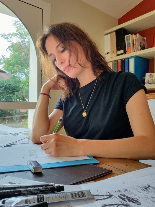 Cécile Becq est née dans le sud de la France, près de la mer, en 1979. Après une Licence d’arts plastiques, elle sort diplômée de l’école Emile Cohl à Lyon. Installée à Grenoble depuis 2005, elle devient autrice-illustratrice principalement pour l’édition jeunesse (Albin Michel, Flammarion, Sarbacane, Actes Sud…). Son univers est tendre, sensible et coloré. Dans son travail, elle aime aussi bien réaliser des illustrations numériques que des illustrations peintes à l’acrylique ou à la gouache. À partir de 2020 elle se tourne vers la bande dessinée et vers un public plus adulte. Sa première bande dessinée Ama, le souffle des femmes (scénario de Franck Manguin) publiée chez Sarbacane obtient plusieurs prix dont la Pépite BD 2020 du salon du Livre et de la Presse Jeunesse de Montreuil. Sa deuxième bande dessinée, Trois chardons (2023) est également publiée aux éditions Sarbacane. La publication de Vaillantes (scénario d’Emilie Chazerand), sa troisième bande dessinée, est prévue pour mai 2026 aux éditions Rue de Sèvres. Son dessin, semi réaliste se rapproche graphiquement de la ligne claire. Elle commence avec ses premières bandes dessinées, un travail intimiste autour de l’émancipation féminine. |